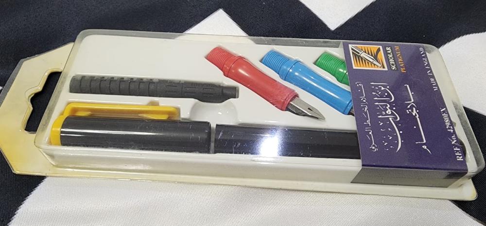 · تحتوي المجموعة على أكثر من سن للكتابة بأحجام مختلفة تناسب جميع أنماط الخط (النسخ، الرقعة، الديواني، الكوفي).