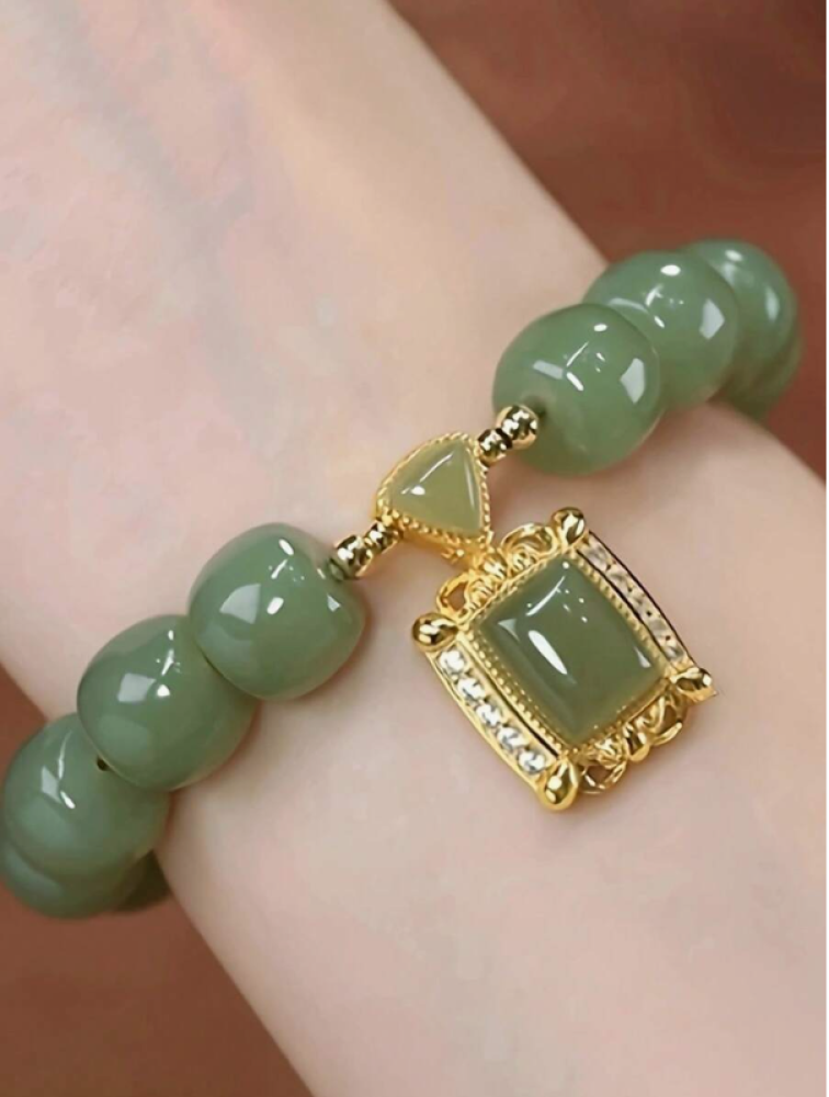 قلم الآغا، ذهبي، عقيق شفاف مموج، وبني شفاف مموج يتوسطهم بني شفاف، مقاس 4 mm