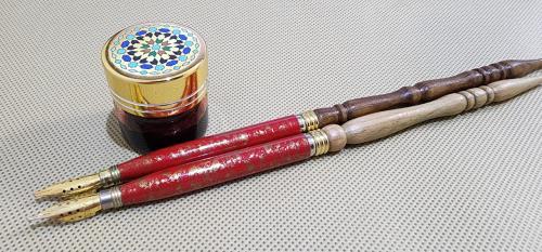 أقلام مقبض خشبي وريشة معدنية (الحرير)