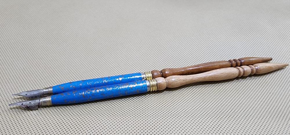 طقم أقلام معدنية (مقبضان خشبيان مع 6 رؤوس معدنية)