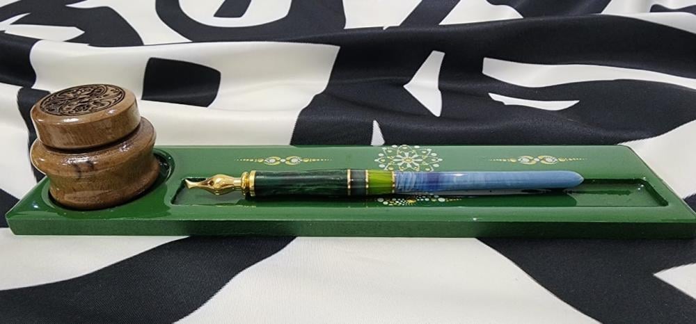 ·      المسند الأخضر بطول 26.5 سم مناسب للأقلام والمحابر الصغيرة أو المتوسطة.