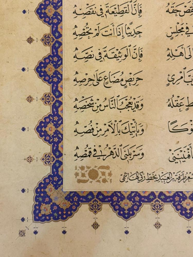 عمل فني أنيق، نُفّذ بأرقى معايير الطباعة على ورق فاخر، ليُصبح أكثر من مجرد لوحة—إنه تجسيد بصري للبلاغة، وهدية تنطق بالأصالة، ورسالة لا يطويها الزمن.