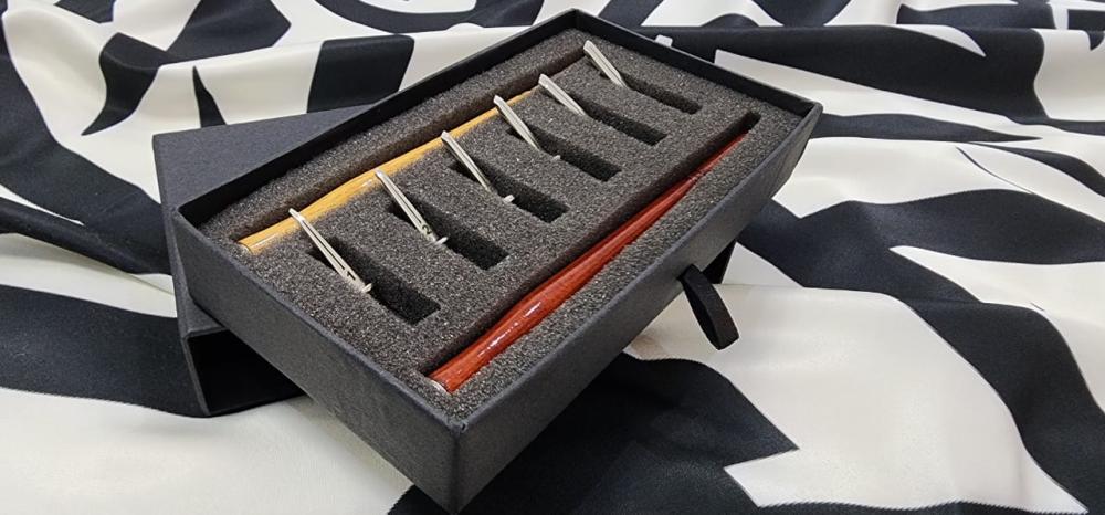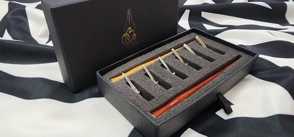 يوفر متجر هاء لأدوات الخط العربي طقم أقلام معدنية (مقبضان خشبيان مع 6 رؤوس معدنية)، وهو طقم مثالي للخطاطين الذين يبحثون عن أدوات احترافية ومتنوعة للكتابة