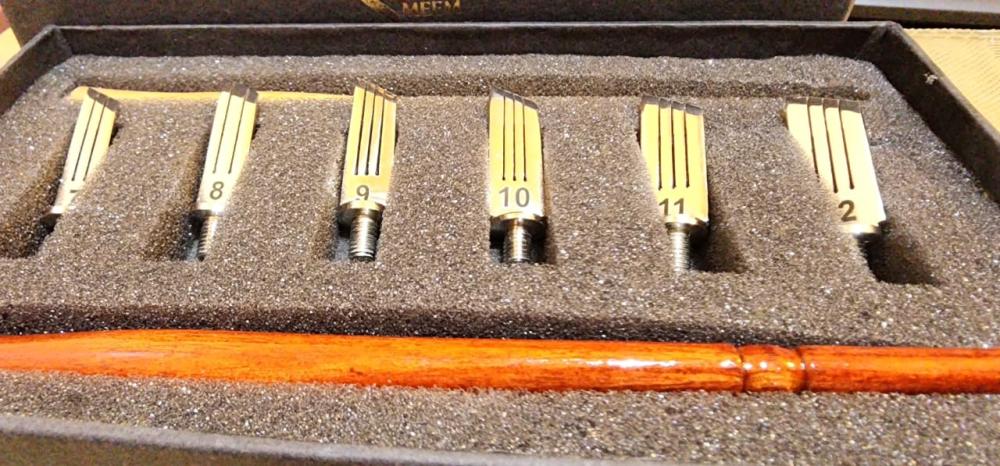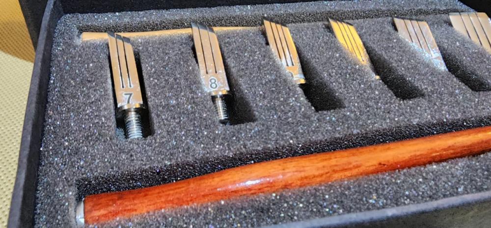 · يحتوي على مقبضين خشبيين فاخرين لراحة اليد والتحكم الدقيق أثناء الكتابة.