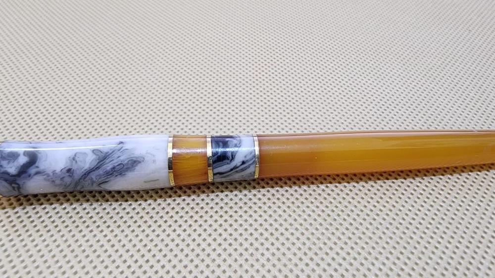 قلم الآغا، ذهبي، أزرق شفاف وفيروزي يتوسطهم بني، مقاس 3.5 mm