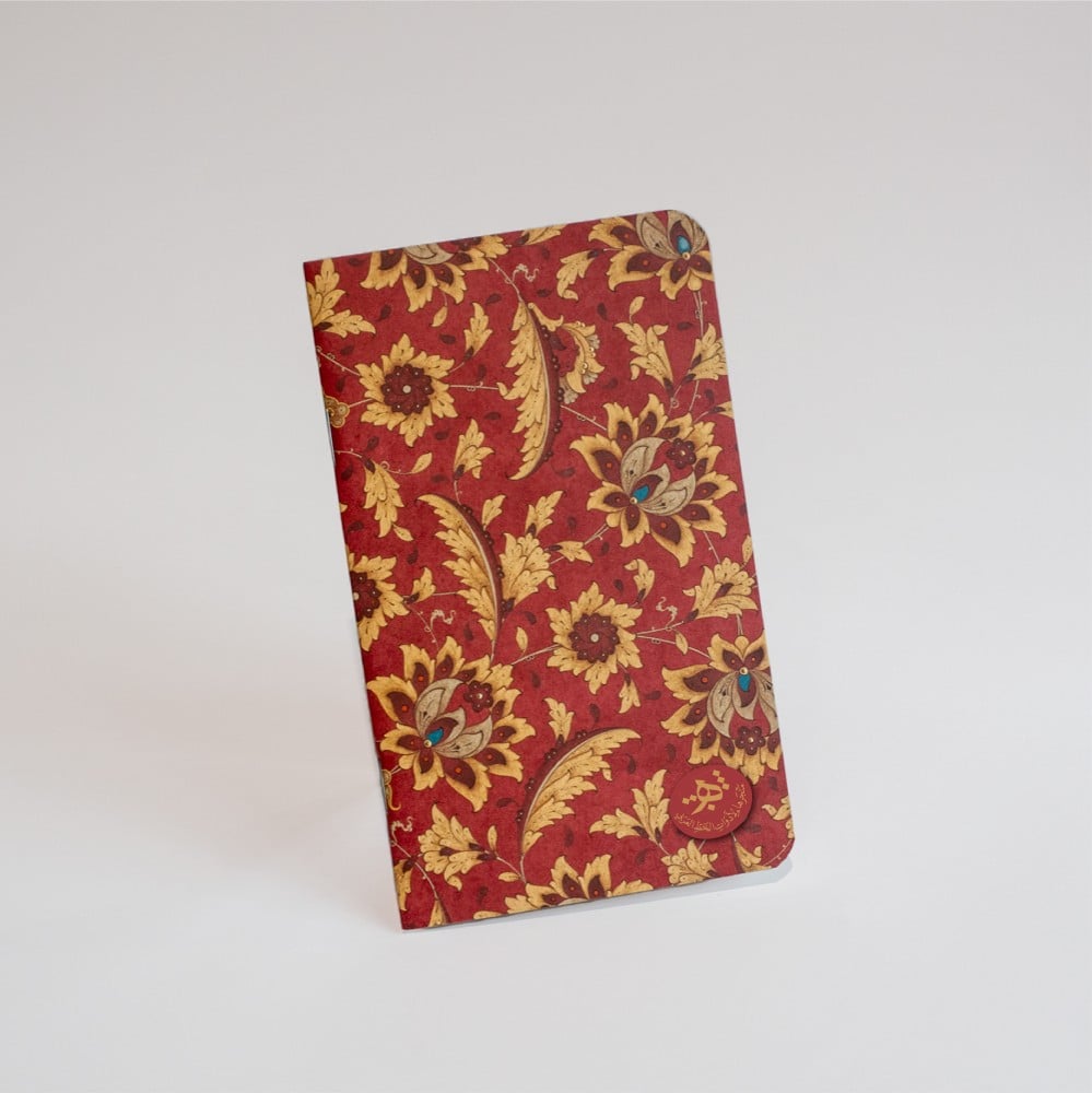مفكرة بتصميم خاص، بغلاف منقوش بزخرفة إسلامية نباتية.