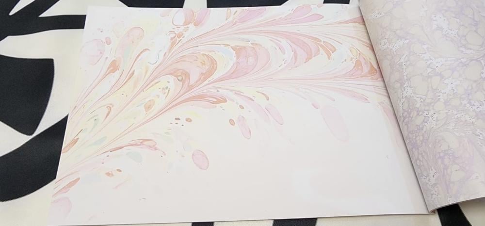 · يتميز كل ورق بألوان فريدة وتكوينات غير مكررة، مما يجعل كل صفحة لوحة فنية مستقلة يمكن استخدامها كما هي أو ضمن أعمال إبداعية.